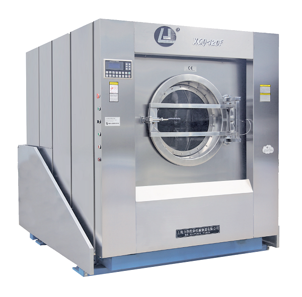 4、水位設置----工業洗衣機主洗過程中的水位應該是低水位,常為15-22cm(15-20kg全自動洗脫機低水位設置為15cm,30kg全自動洗脫機低水位設置為18cm,50kg全自動洗脫機低水位設置為20cm,70-100kg全自動洗脫機低水位設置為22cm),這一范圍的水位可保持大的洗滌機械作用,同時可確保獲得充分的化學洗滌劑濃度,保持了合理的洗滌成本。
